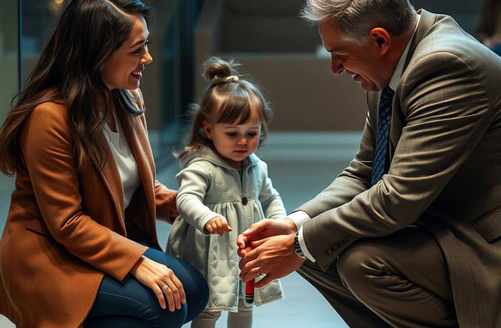 Lily immediately clung to her mothers leg, wide-eyed and silent, taking in the shiny floors, the serious men in crisp suits, and the towering potted plants.
