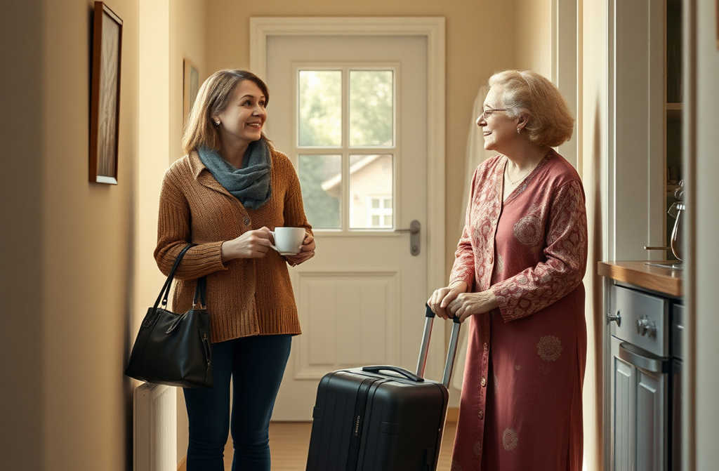 Emily freezes, a damp dishcloth still clutched in her hand. She has just finished washing the dishes after dinner, savoring the rare quiet of the eveningher husband, Mark, has gone to the corner shop for a loaf, and the children have finally fallen asleep after a long coaxing. And now the front door opens and Doris appears, suitcase in tow.
