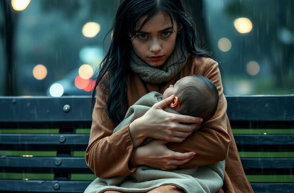 The door slammed behind her with a sharp thud. Outside, rain poured in sheets. Emily wandered aimlessly, soaked, the baby wrapped in a thin blanket that barely shielded him. She found a bench in a park and sat, shielding him with her own body. She was cold, hungry, afraidbut she never let go.