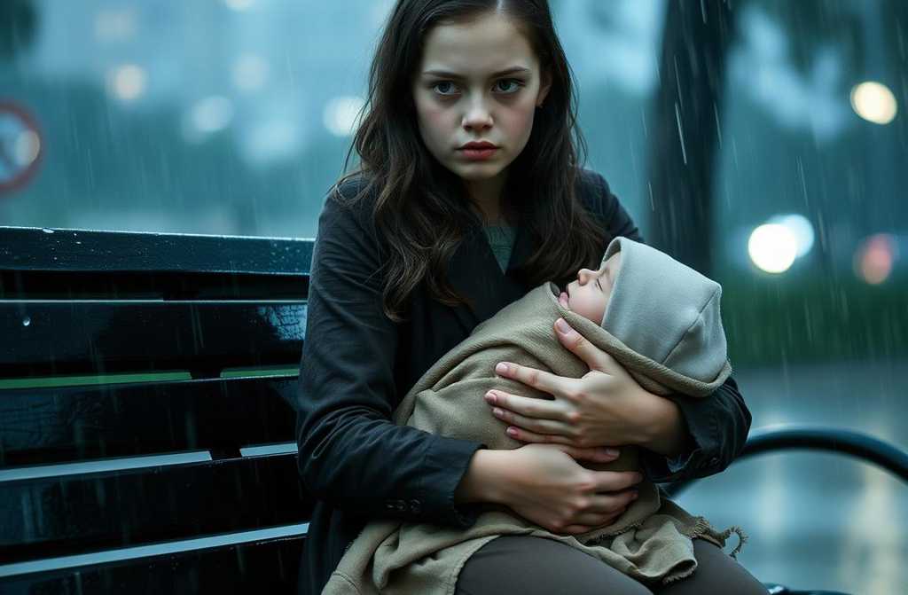 The door slammed behind her with a hollow thud. Outside, rain lashed down in sheets. Emily wandered, soaked to the bone, Oliver wrapped in a thin blanket barely shielding him. She collapsed onto a park bench, shielding him with her own bodycold, hungry, terrified, but never letting go.