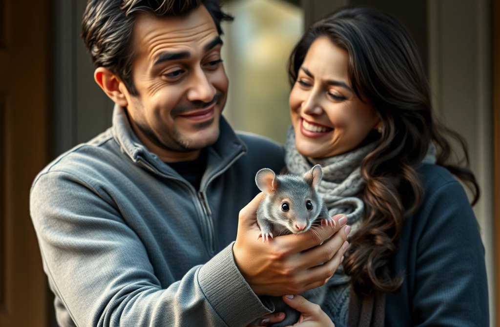His eyes practically crawled up his forehead. Trembling, he fumbled in his jacketthen pulled out a small grey hamster with pink ears, a twitching nose, and beady black eyes.