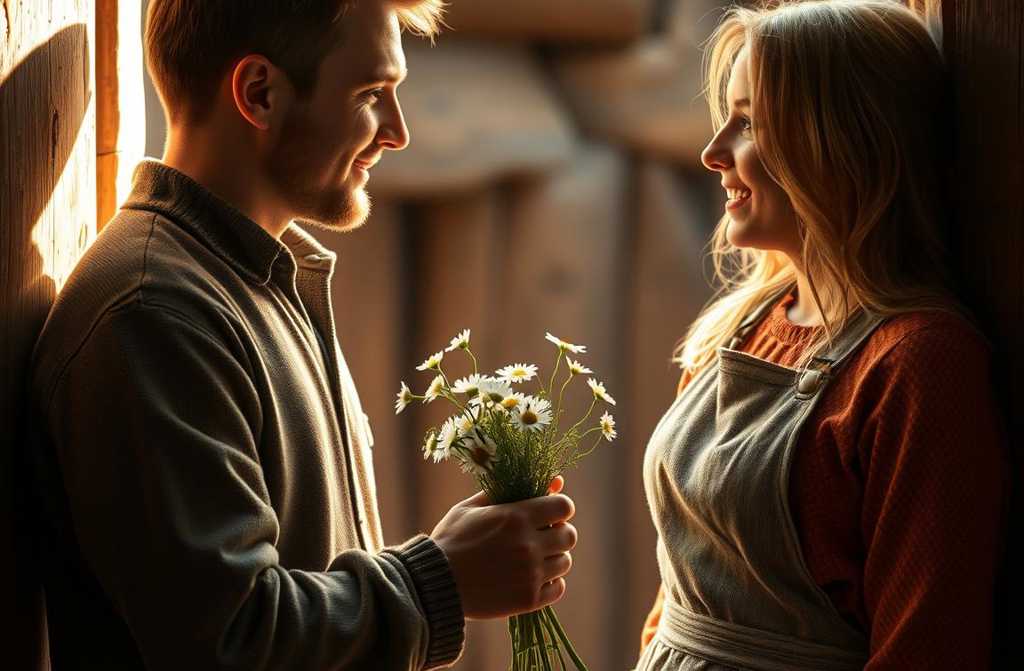 She didnt answer straight away. She stood, stepped into the garden, and after a minute returned with a single daisy. She placed it on the table and wrote: