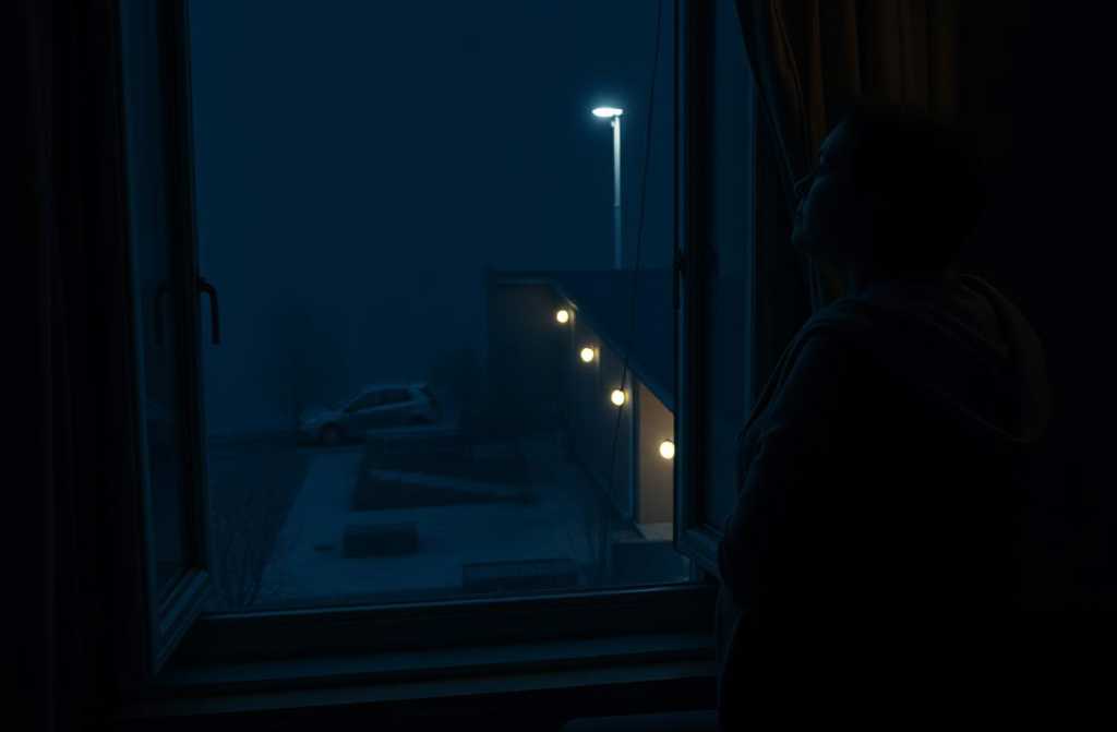 Emily stood by the window, peering into the dark silhouette of the garden.