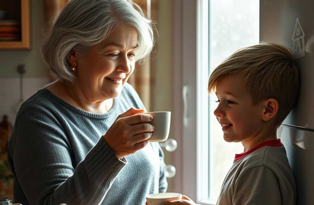 Oliver follows her silently. The kitchen feels warm: mugs and a plate of bread sit on the table. Emma pours tea for herself and for him, trying to chat about trivial thingsthe weather outside, the need to buy new rubber boots. The boy answers in monosyllables, his gaze drifting somewhere beyond herperhaps at the rainspattered window, perhaps inward.