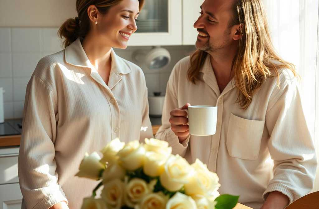 Andrew shuffled into the kitchen, spotted me in my robe with my hair loose, scrolling through my phone. He actually seemed pleased to see me.