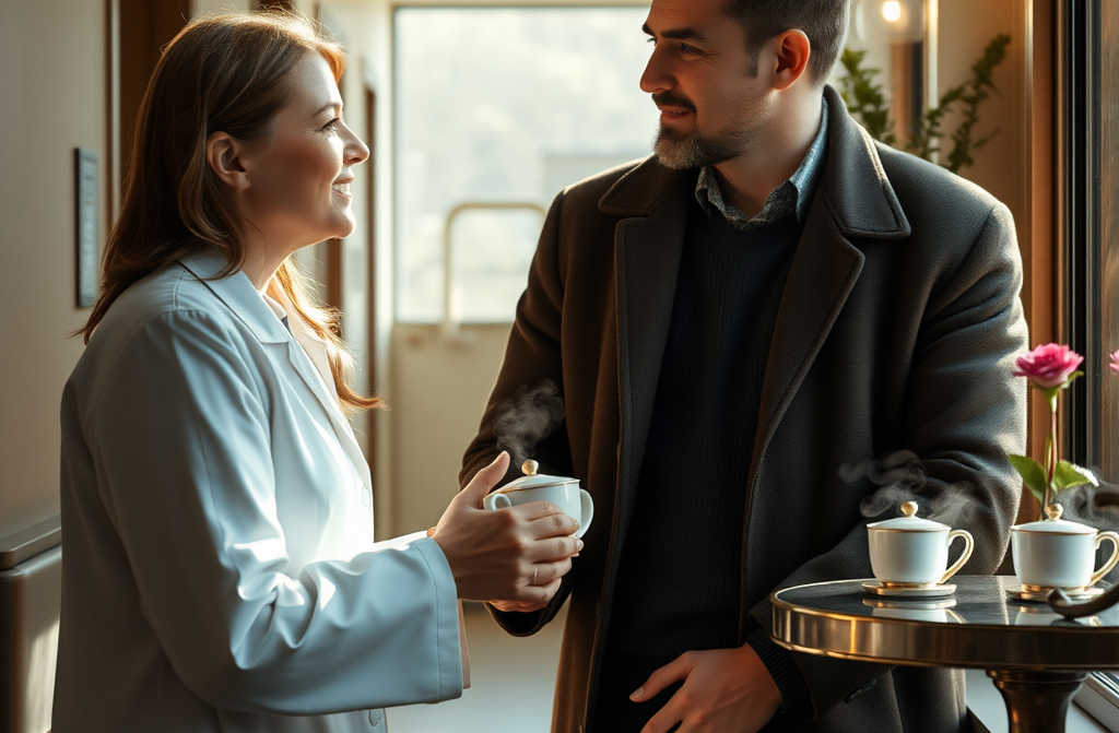 Eines Abends, als ihr Sohn Lukas kurz vor Nachtdienst stand, ging Anneliese in die Lobby, um etwas zu trinken. Dort, am Fenster, stand Dr. Sauer und blickte auf die dämmernde Stadt.
