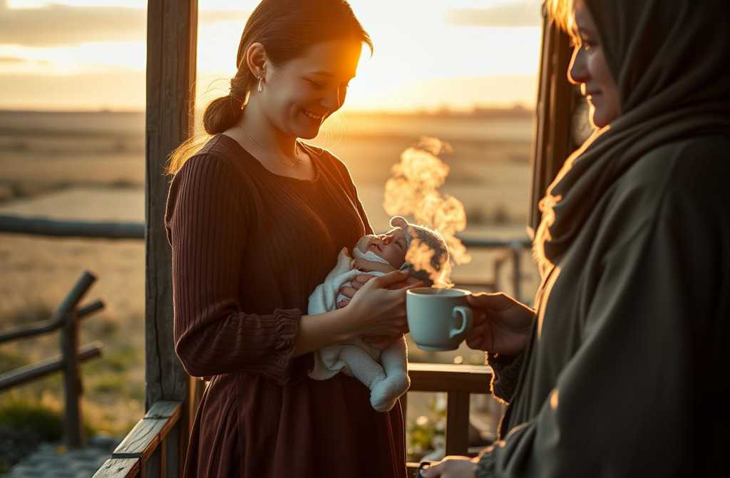 A few days later, Emily, weary from the farm, carries a jug of milk home when she opens her door to find Katie seated at the table, hands folded beneath a swollen belly. Beside her sit her own parentsinlaw, heads bowed.