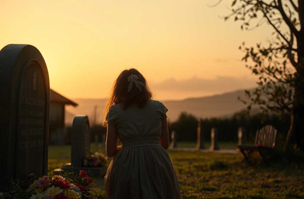 On a weekend trip to Alices gravesite, Emma cleared weeds, laid flowers.