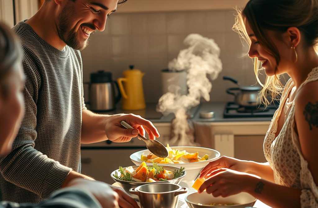 Andreas, du hast doch einen harten Job, du solltest dich erholen, nicht in der Küche stehen, sagt sie besorgt. Ein Mann sollte das nicht machen.