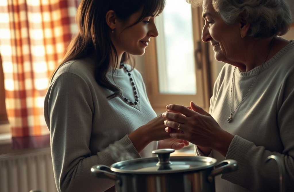 The kitchen fell silent, the only sound the bubbling soup on the hob. Lena set the plate down and pushed a loose strand of hair from her forehead. Her hands trembled.